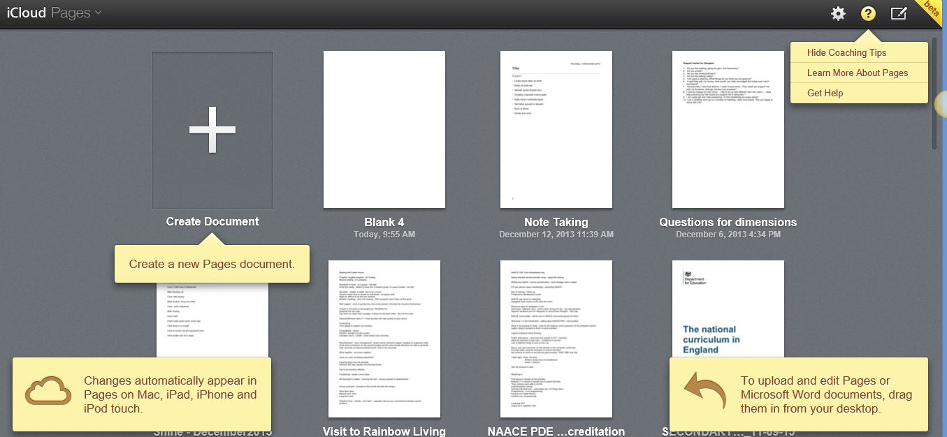 iCloud has often been a mystery as to what it does when you use your iPad. Matters weren’t helped  when iWorks.com was about as this was apple’s could server at the time. But today I had an epiphany and realised the purpose of iCloud much better. If you have a iTunes account you can download a desktop version of iCloud. Now in its beta version you have access to Pages ( Word), Keynote(PowerPoint) and Numbers(Excel). This means you can access files from and interestingly for me to your iPad. Even drag and drop office written documents! Very handy for students needing to access word, powerpoint,excel and transfer documents made or stored on a PC  via  drag and drop to iCloud on the desktop . In order to to transfer from your iPad to the PC you need to open iCloud and choose the download option which will give you the transer formats which would be either PDF, Apple App or .Doc. PPT,etc . I think that would help take another process out of the list of things to do to make iCloud a more attractive option than emails!
