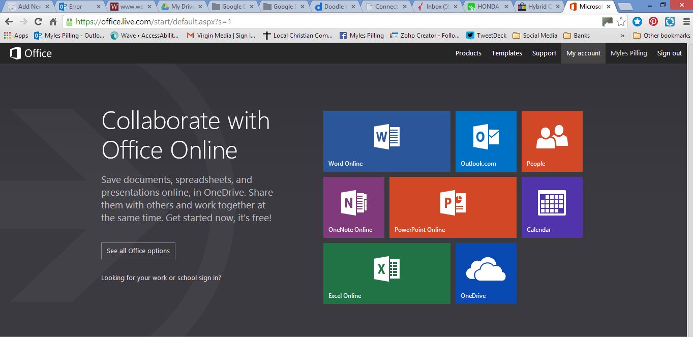 You will need a Microsoft Account which you can sign up for free if you don’t have one but it gives you – word, excel, powerpoint, onenote, outlook,onedrive ( online storage that was formerly “SkyDrive”.