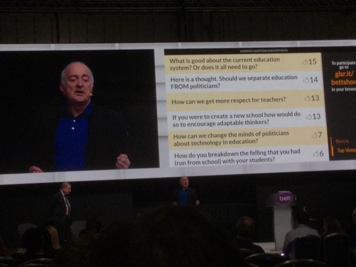 Alas there wasn’t time to ask it! But why not think of returning education back to schools and LA’s? Doing education the present work hasn’t worked so let’s try the alternative. Sir Tony agrees the present system hasn’t worked as he call it since ” Biker Gove” or is that “Gove” so why not go back to a time that I remember when teachers were respected, supported and most importantly funded!…… Before politicians got their hands on!