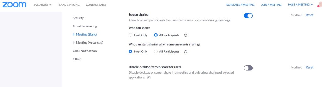 Zoom Desktop Sharing