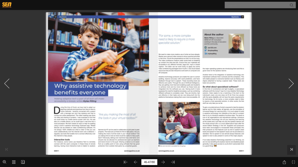 I was asked to contribute to this month’s edition of SEN Magazine. Please go over to https://senmagazine.co.uk/. Here is a direct link to the article. https://senmagazine.co.uk/sen-online/sen111/#p=47. Buy a subscription. It’s worth the money. There is a section on Assistive Technology with articles by Mark McCuster ( Texthelp) , Paul Doyle & Antony Ruck. Great source of information about Assistive Technology.